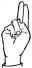 На ћирилици написано БЛАЖА МАНЧИЋ састоји се из 11 слова [?]. Исписано ћириличном једноручном азбуком за глувонеме: